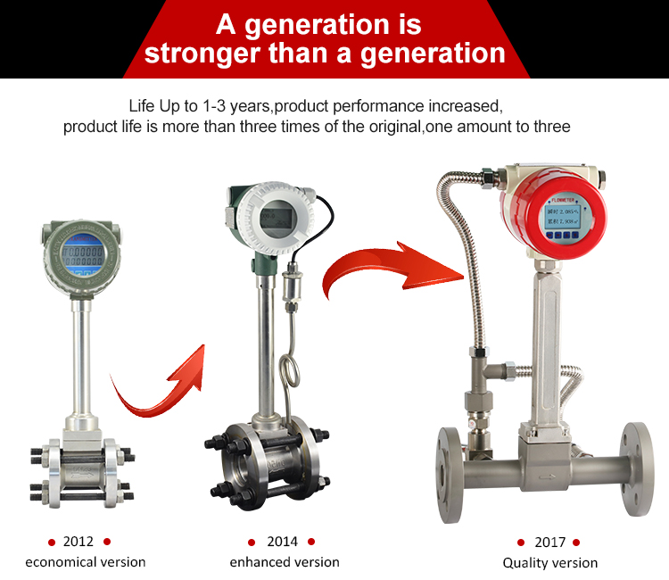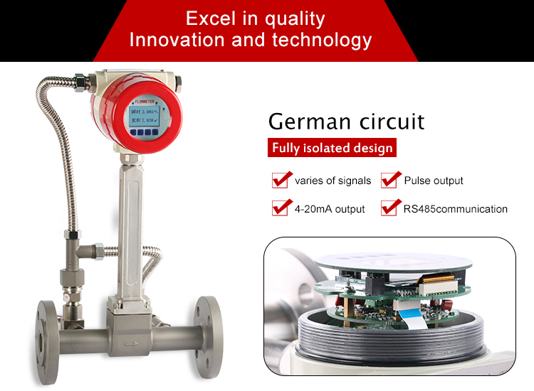 SUP-LUGB Vortex flowmeter work on the principle of generated vortex and relation between vortex and flow by theory of Karman and Strouhal to measure the flow. With temperature and pressure compensation, it is suitable for the detection of gas flows in different environments, such as steam and compressed air and other gas.